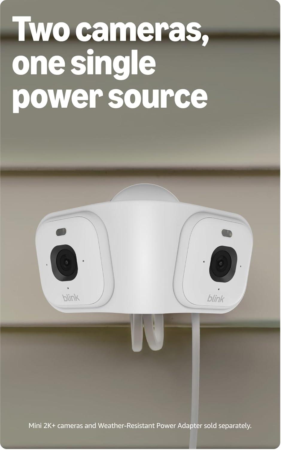 Comprehensive coverage of your space — Connect two compatible Blink cameras into one integrated system with 180° horizontal coverage. Works with two identical Blink Mini 2K+ or two Blink Mini 2 cameras (cameras sold separately).